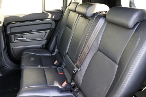Rear seat conversion for Defender 110 (2023-2025 models) using genuine Land Rover seats with leather insert to match front seat trim, fitted with Isofix.