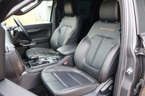 Premium Wildtrak interior with touchscreen infotainment, leather trim, and advanced driver tech