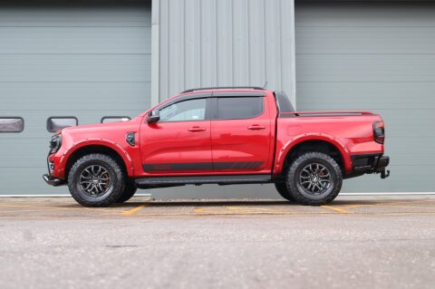 Finished in stunning Wicked Red Pearl, this 2023 Ford Ranger Wildtrak has been expertly styled by Seeker UK and benefits from a high-spec Raptor Pack, giving it an aggressive yet premium presence.
