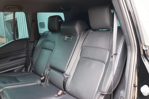 OEM rear seat fitted – manual operation with white contrast stitch to match factory trim